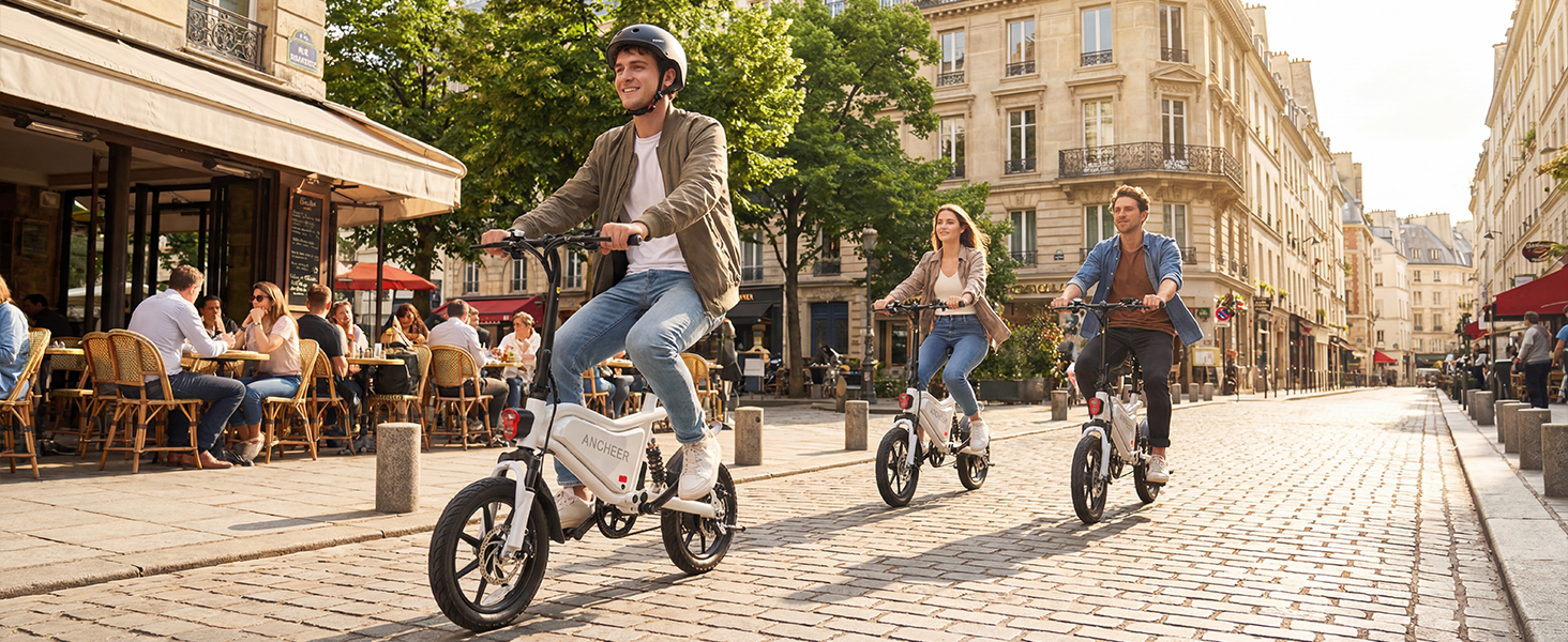 - 🚗[Foldable & Lightweight User Friendly] With mini 50*21*42inch size, 48.5lbs weight, Ancheer 14” Folding Electric Bike is space saving and easily carried in car trunks. Max load: 265lbs/120kg, recommended height range: 4'6''-5'6''. Ideal for adults and teens for convenient rides around neighborhoods, cities, campuses, campgrounds, and beaches for short trips or grocery shopping, etc.!